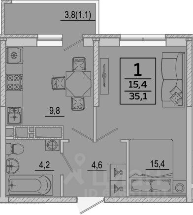 Общая площадь35,1 м2