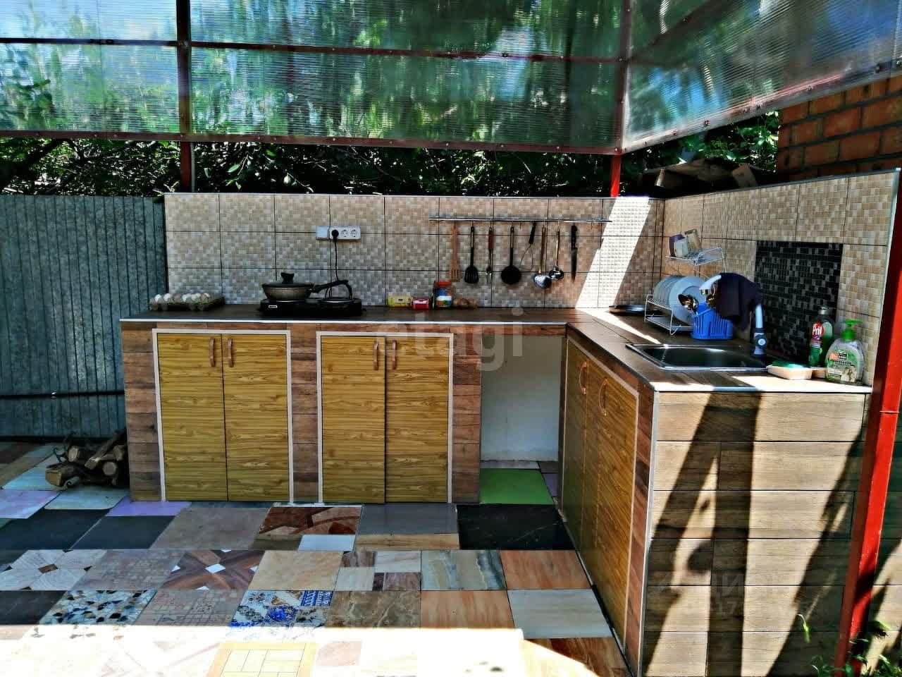 Участок 7,2 сотки, облагорожен, двор выложен плиткой, большая виноградная беседка, парковка на несколько машин перед домом. Имеется летняя кухня под навесом, зона отдыха с мангальной зоной для гостей и батут для детей.