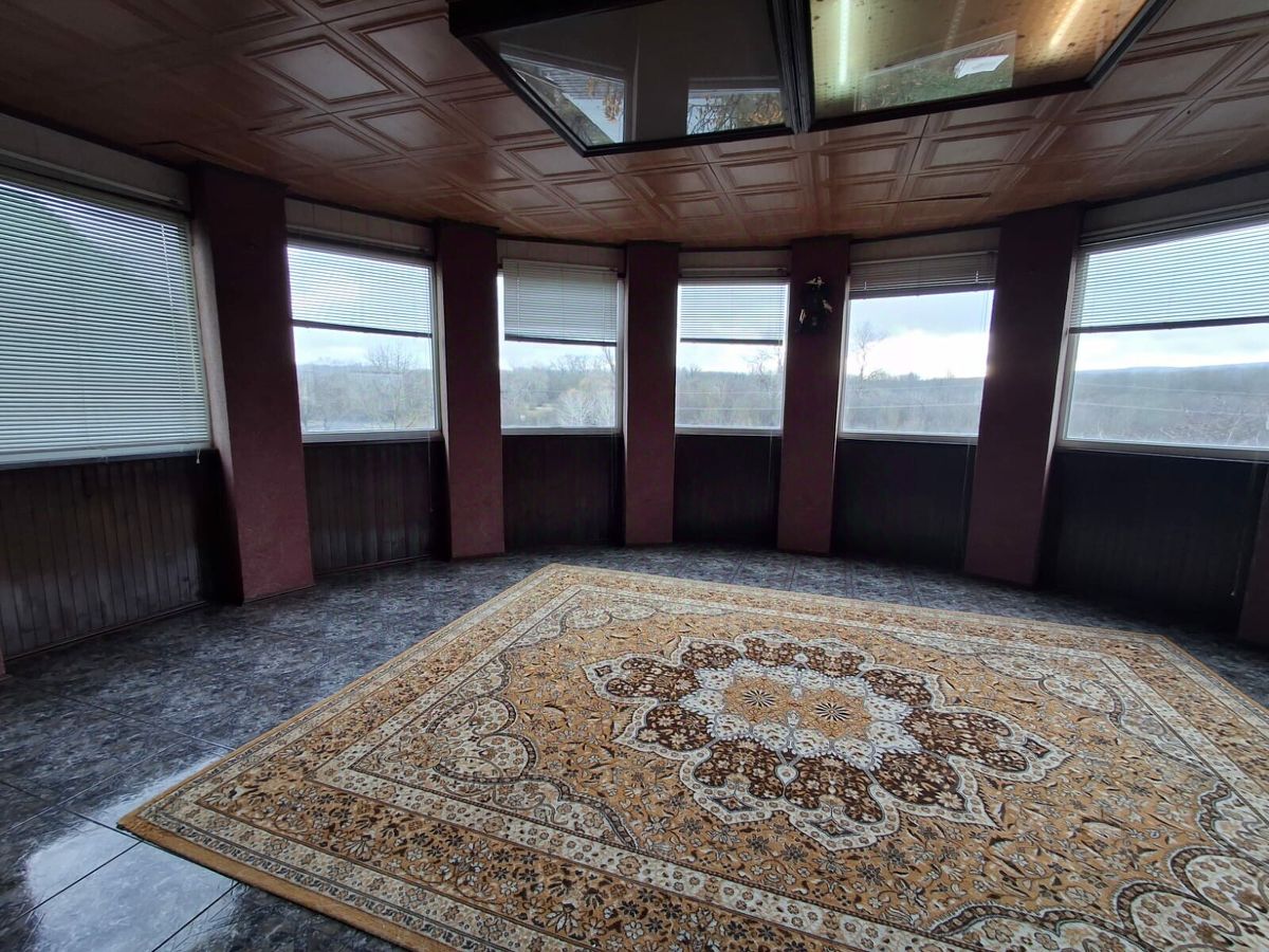 Особняк также оснащён просторной террасой с окнами, выходящими на живописные природные пейзажи. Под домом находятся кладовая, котельная и гараж.