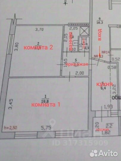 Продается 2х комнатная квартира общей площадью 49,5 кв.м., расположенная на 3 этаже, 4 этажного дома.