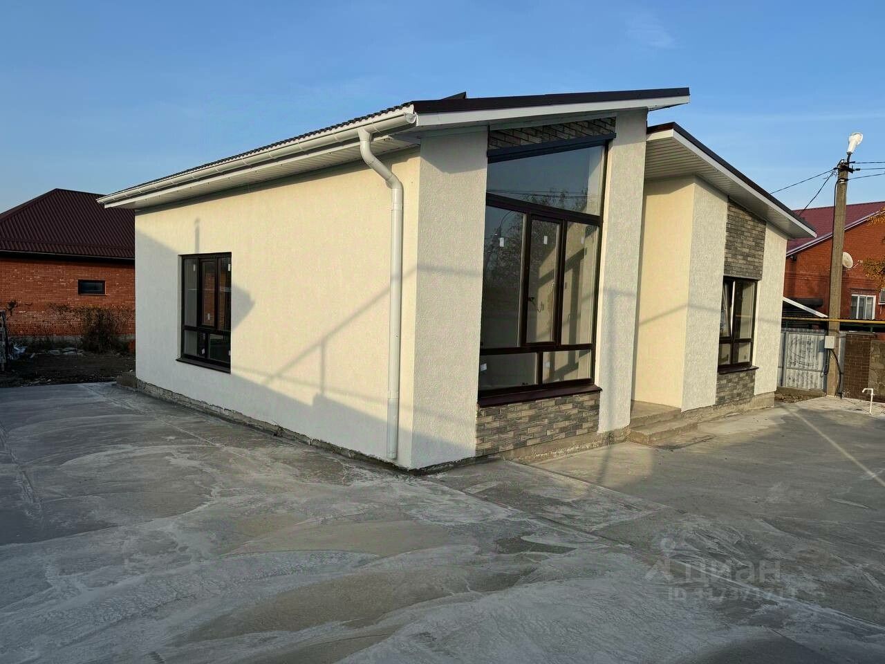 Дом 70м2 на земельном участке 5 соток. В доме две комнаты, кухня гостинная, совмещенный санузел. Дом в предчистовой отделке, сделана отмостка вокруг дома и забетонирован двор.
