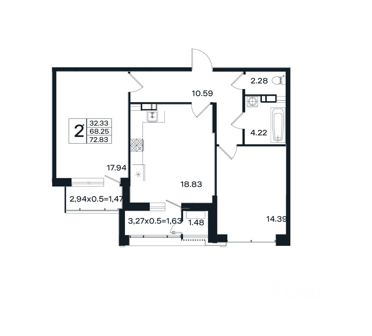 Общая площадь72,83 м2