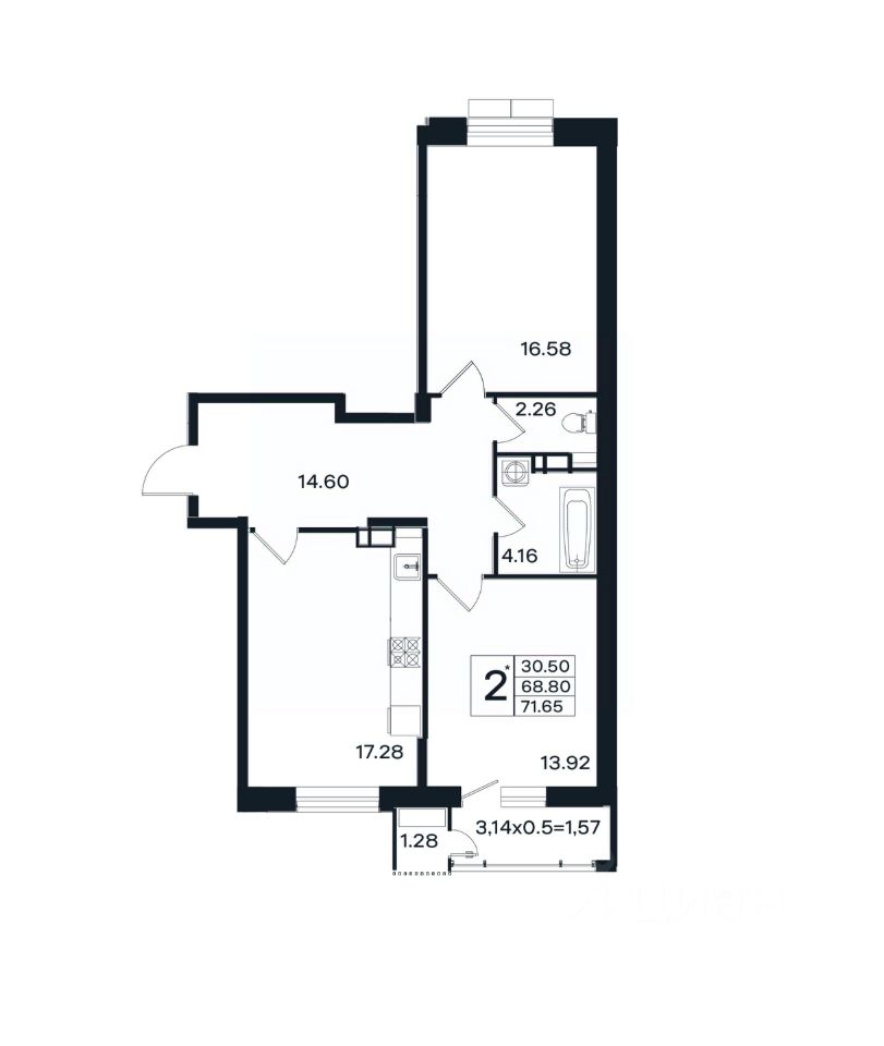 Общая площадь71,65 м2