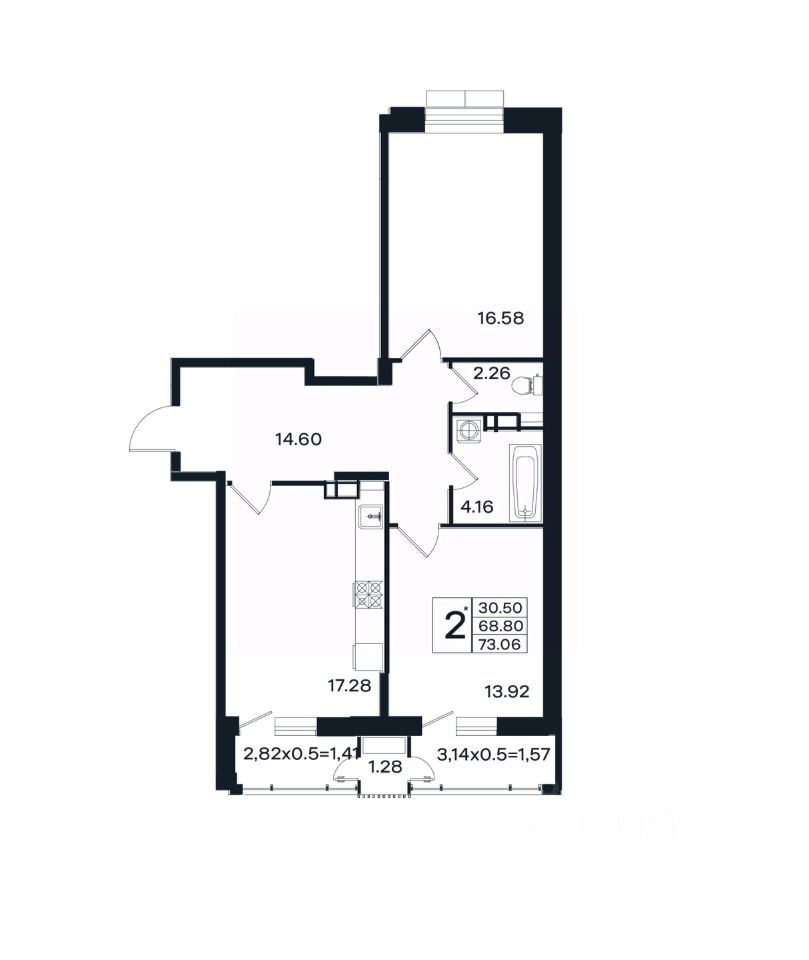 Общая площадь73,06 м2