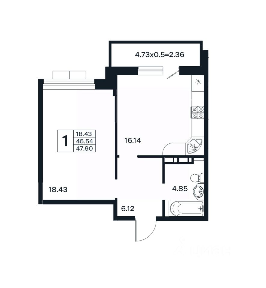 Общая площадь47,9 м2