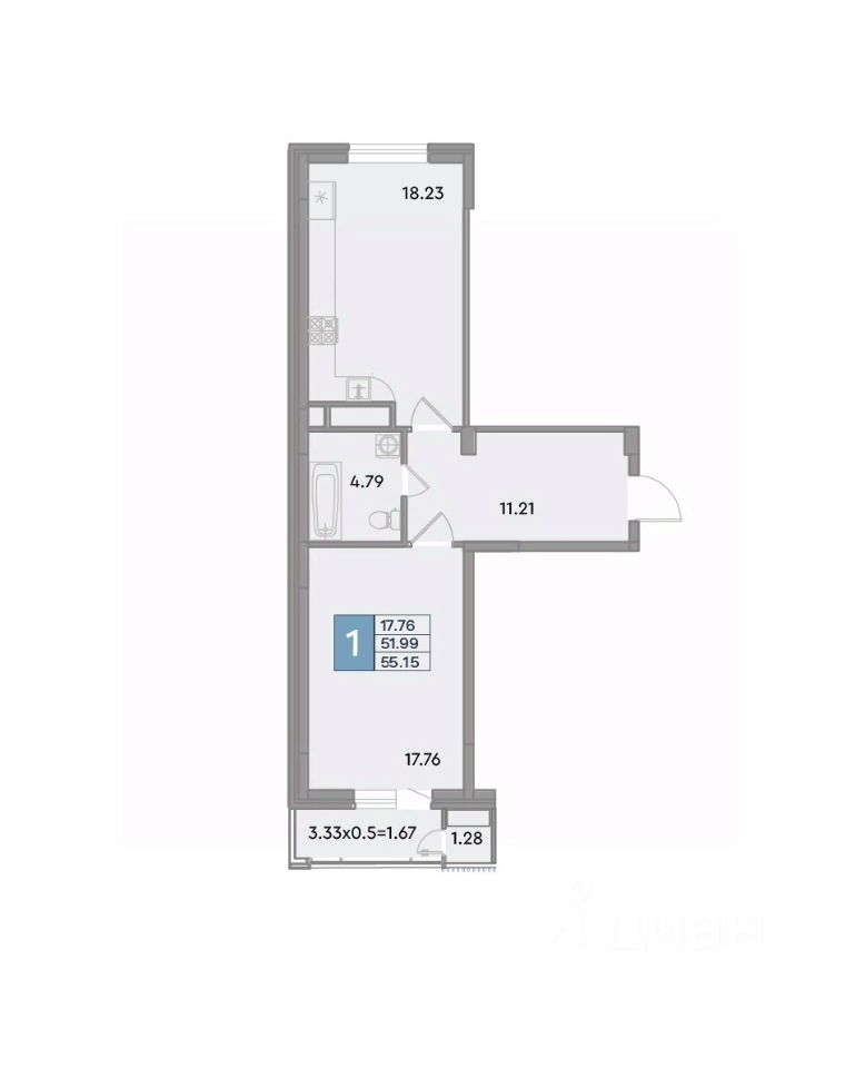Общая площадь55,15 м2