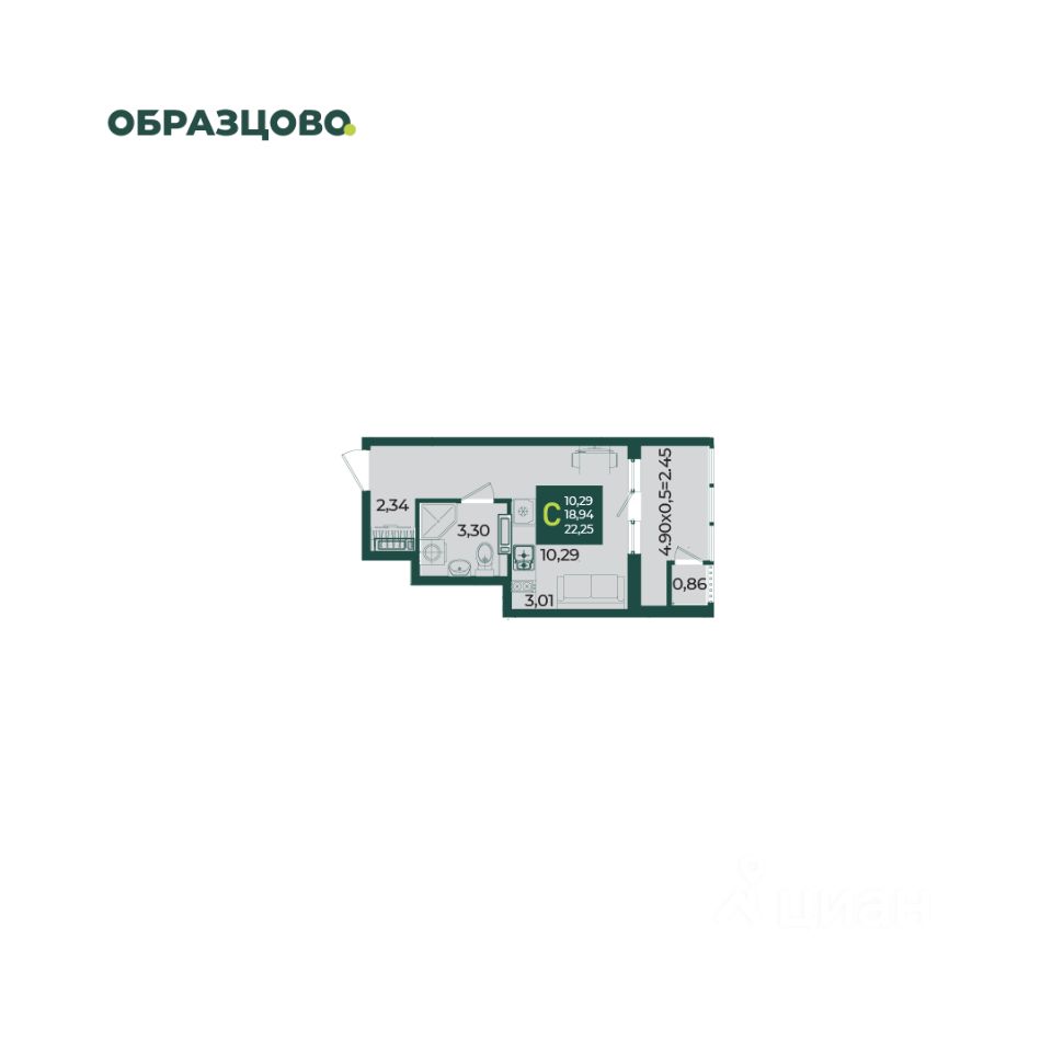 Общая площадь22,25 м2