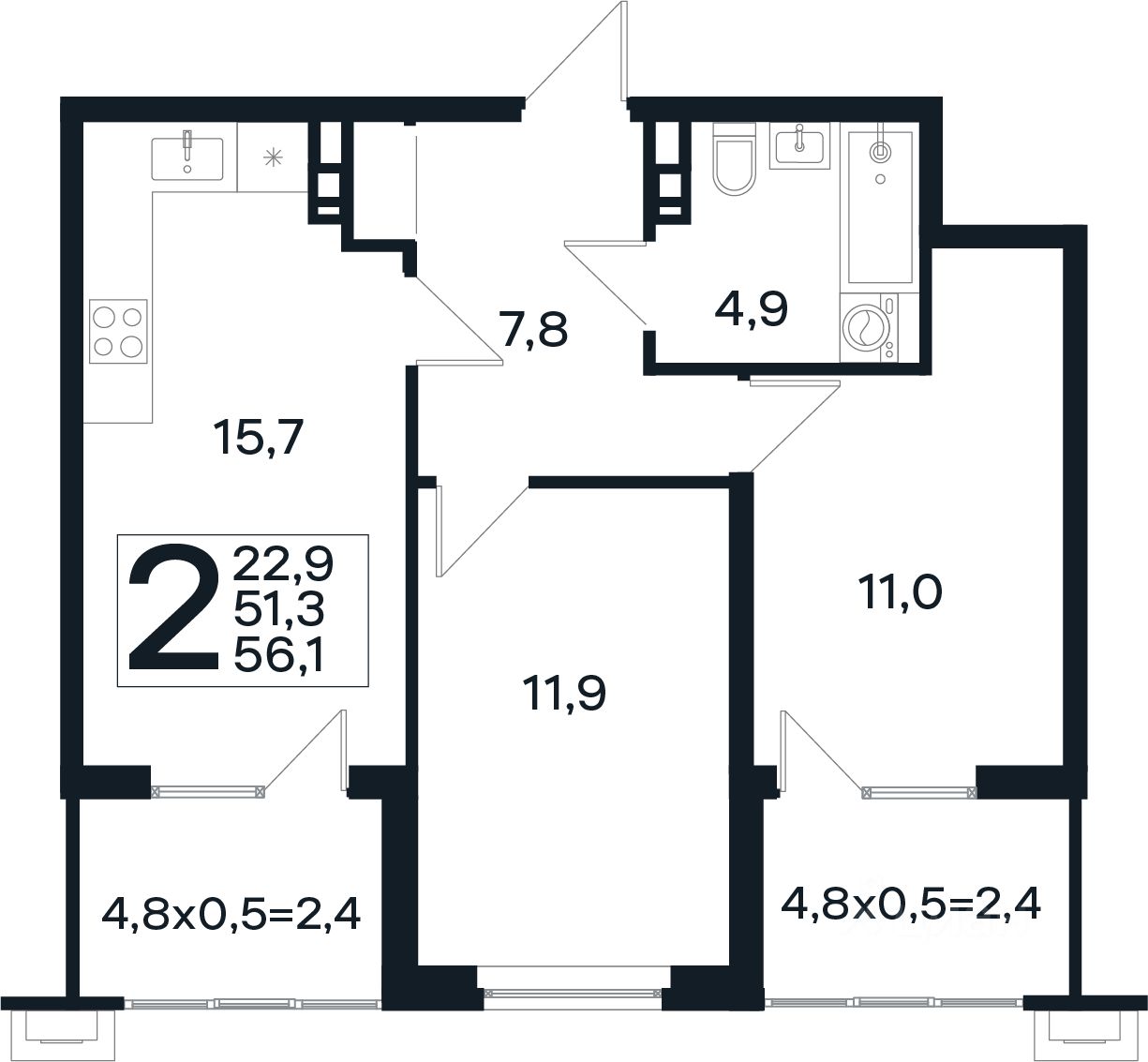Общая площадь56,1 м2