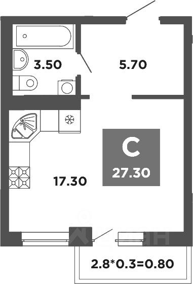 Общая площадь27,3 м2