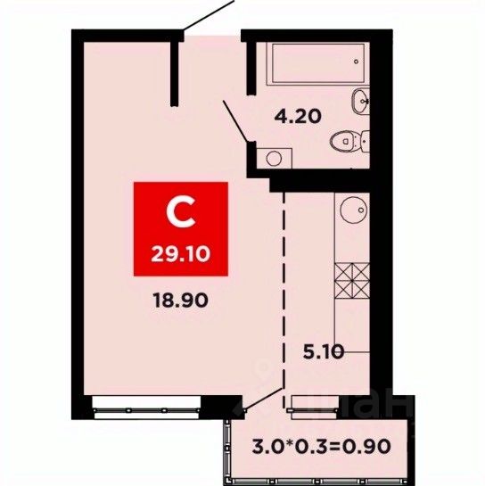 Общая площадь29,1 м2