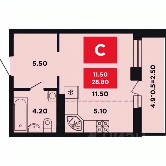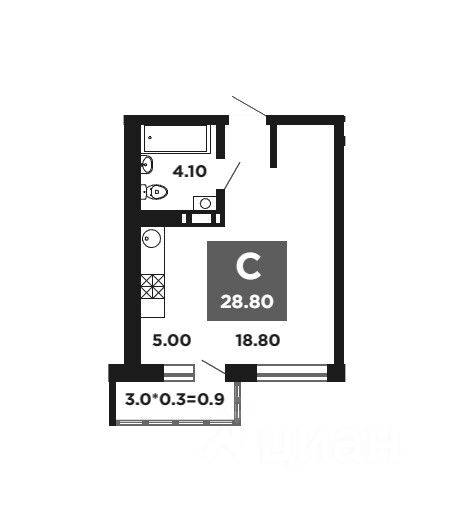 Общая площадь28,8 м2