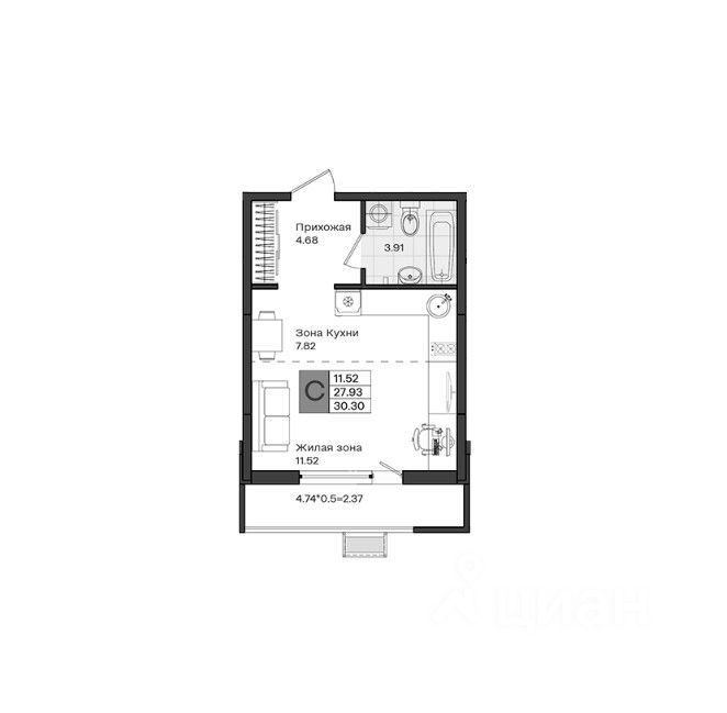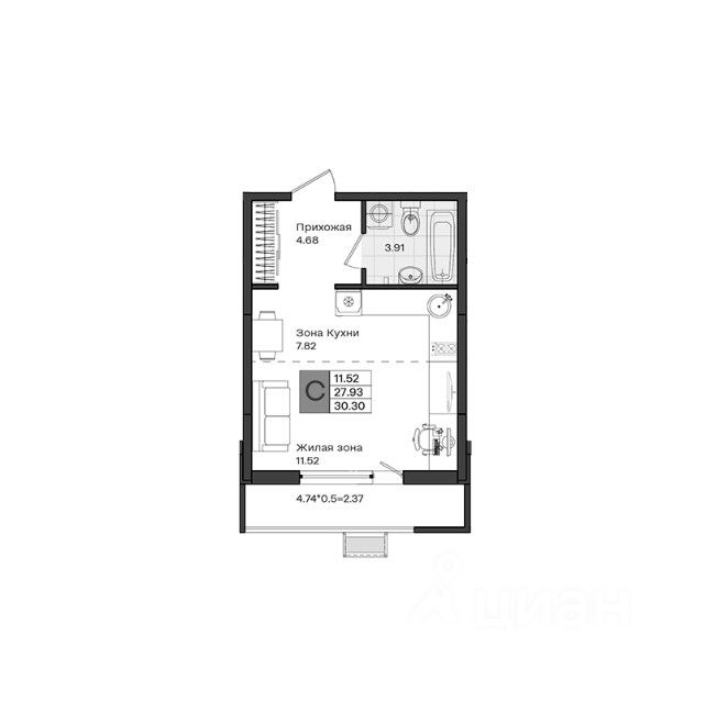 Общая площадь30,3 м2