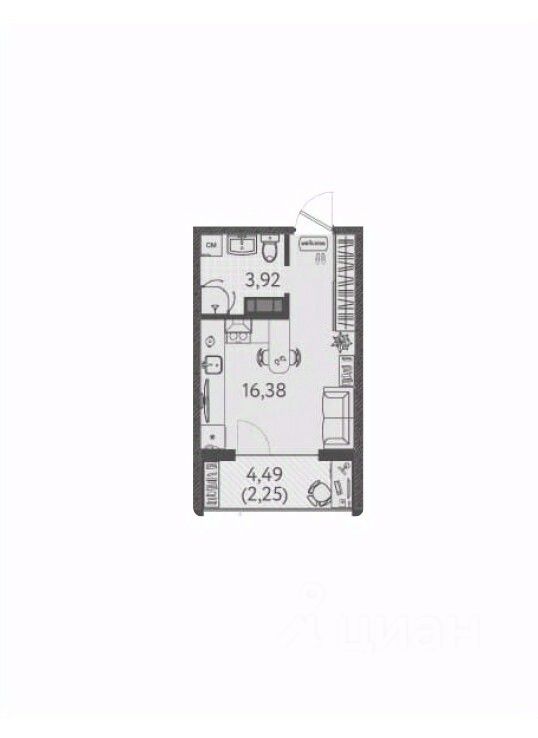 Общая площадь22,55 м2
