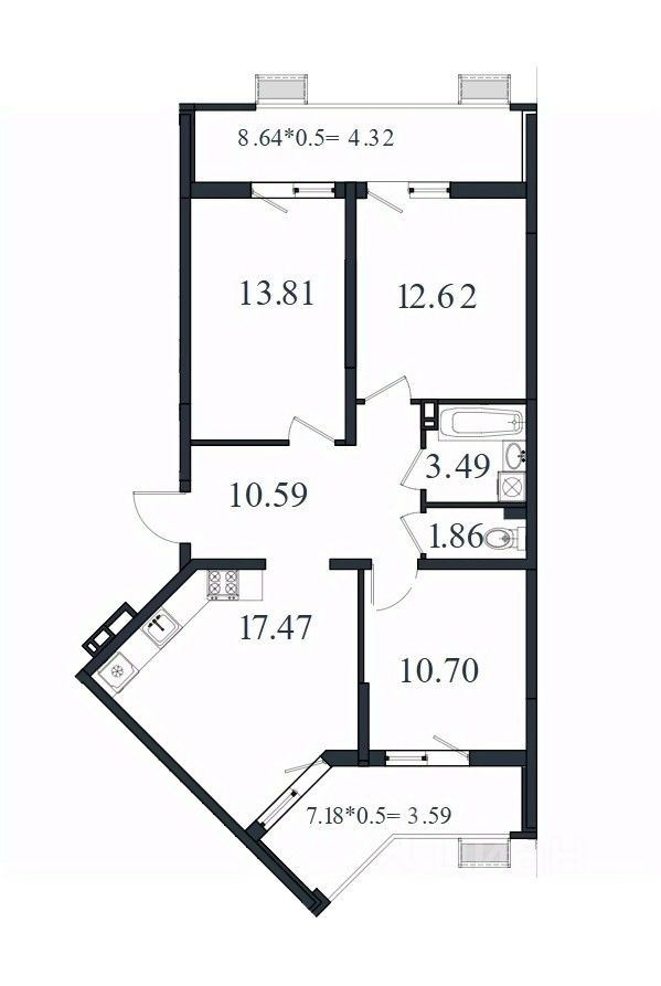 Общая площадь78,45 м2