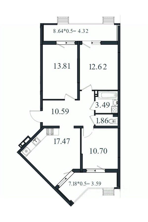Общая площадь78,55 м2