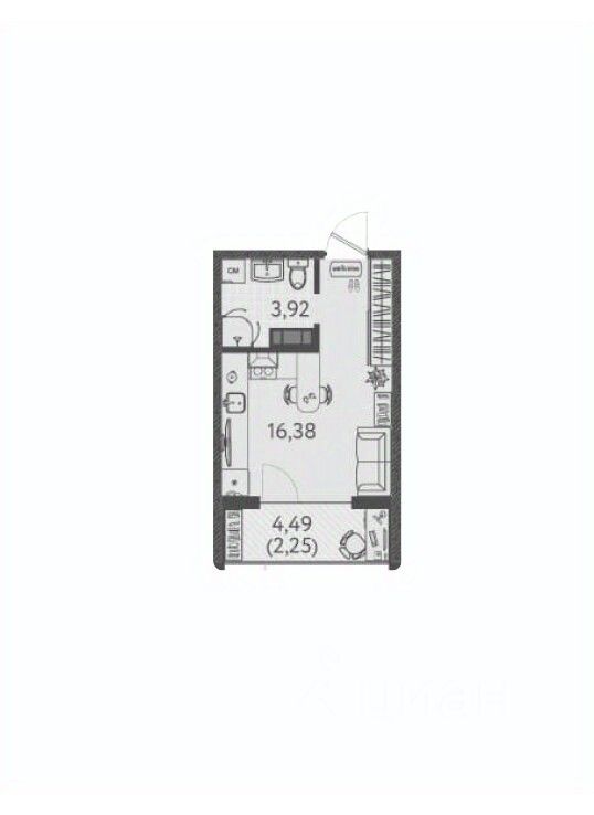 Общая площадь22,55 м2