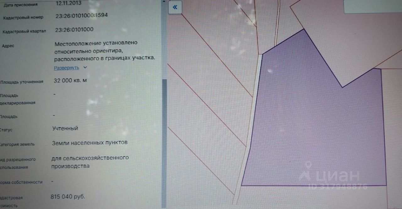 Вид разрешенного использования: для сельскохозяйственного производства.
