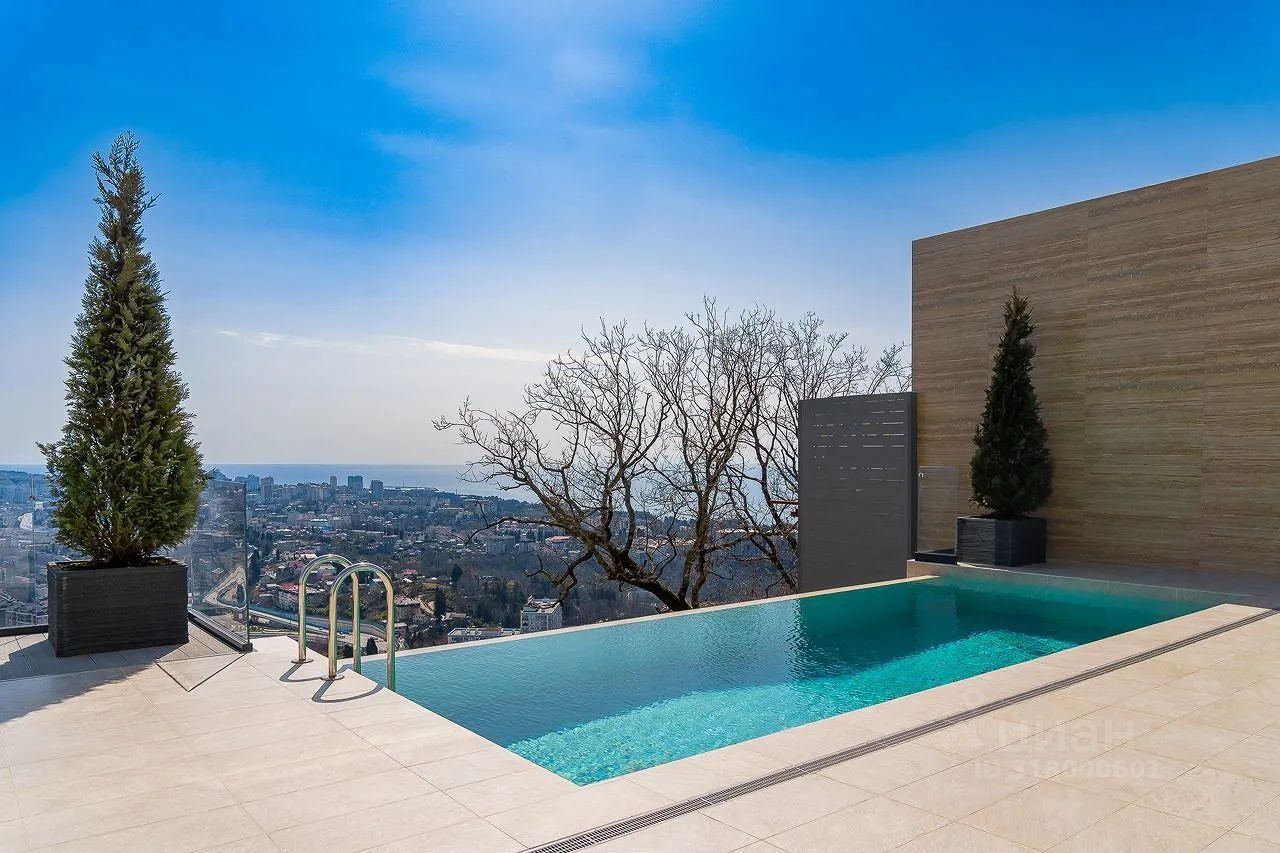 Продаю монолитный дом с бассейном и прекрасным видом на море и на город. На машине до парка Ривьера десять минут. Идеально подходит для постоянного проживания и для использования в качестве резиденции для отдыха на территории города-курорта.