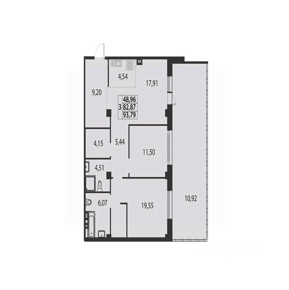 Общая площадь93,79 м2