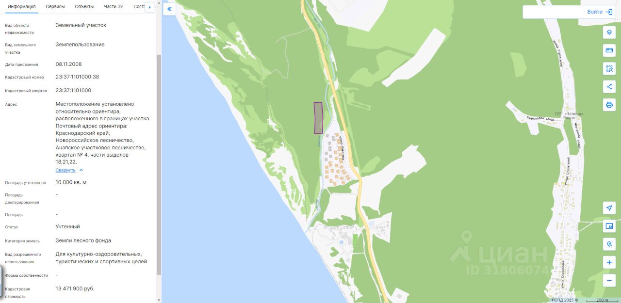 Продам Уникальный Участок для Вашего Бизнеса площадью 10 000 кв.м. (1 гектар), расположенный в живописном Краснодарском крае, на территории Анапского участкового лесничества! Расположен территориально за ЖК Anapolis Residence ,на пригорке в лесном массиве, по почтовому адресу : Краснодарский край, Анапское лесничество, квартал 4, части выделов 18,21,22. Идеально подходит для Организаций и компаний, занимающихся развитием туристической инфраструктуры. Вы можете здесь создать туристические и спортивно-оздоровительный комплексы, базы отдыха, кемпинги, эко-отели и рекреационные центры , вы можете использовать данный участок для создания объектов отдыха и развлечений в окружении нетронутой природы. Также возможно использование для осуществления религиозной деятельности. Участок находится в долгосрочной аренде до 28 июня 2055 года. Это обеспечивает стабильность и долгосрочную перспективу для вашего проекта. Частные инвесторы и предприниматели в сфере туризма и отдыха могут быть заинтересованы в создании здесь уникальных рекреационных проектов на природной территории. Преимущества: Близость к природным объектам • Реки Анапка, Шумринка, Шингарь, Сукко. • Лесной массив с богатой флорой и фауной. • Черноморское побережья Сукко и Утриша Транспортная доступность • Удобный подъезд к участку. • Близость к г. Анапа и Новороссийску. Большая площадь для масштабных и разнообразных проектов. Целевое назначение, идеально соответствующее современным трендам эко-туризма и здорового образа жизни. Долгосрочная перспектива развития благодаря длительному сроку аренды. Природное окружение, обеспечивающее уединение, свежий воздух и привлекательность для посетителей. Расположение в Краснодарском крае одном из самых востребованных туристических регионов России. Не упустите свой шанс приобрести перспективный актив для развития туристического или спортивного бизнеса в одном из самых привлекательных природных уголков России! Кадастровый номер: 23:37:1101000:38