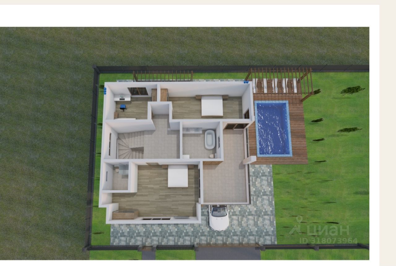 На 2-ом этаже : две спальни, санузел, коридор, терраса, балкон.