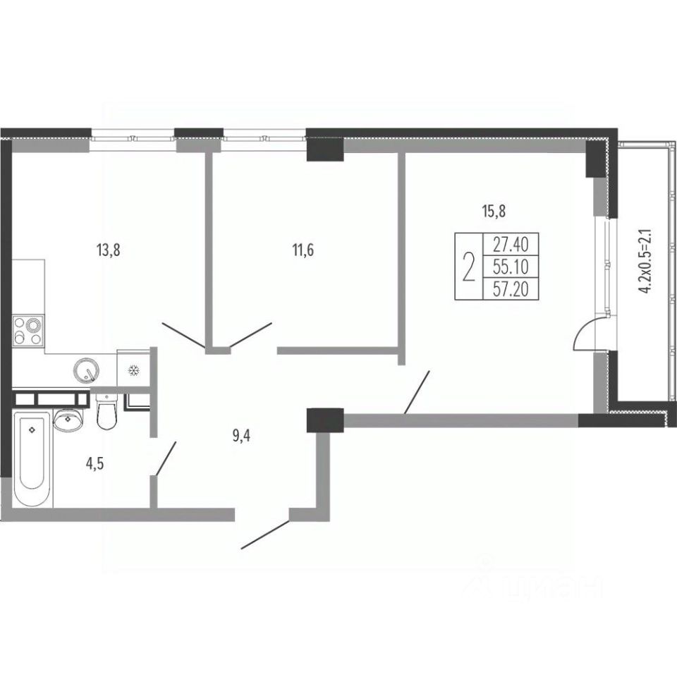 продам 2-к, Круговая, 4/1 корп. 413 558 500 ₽