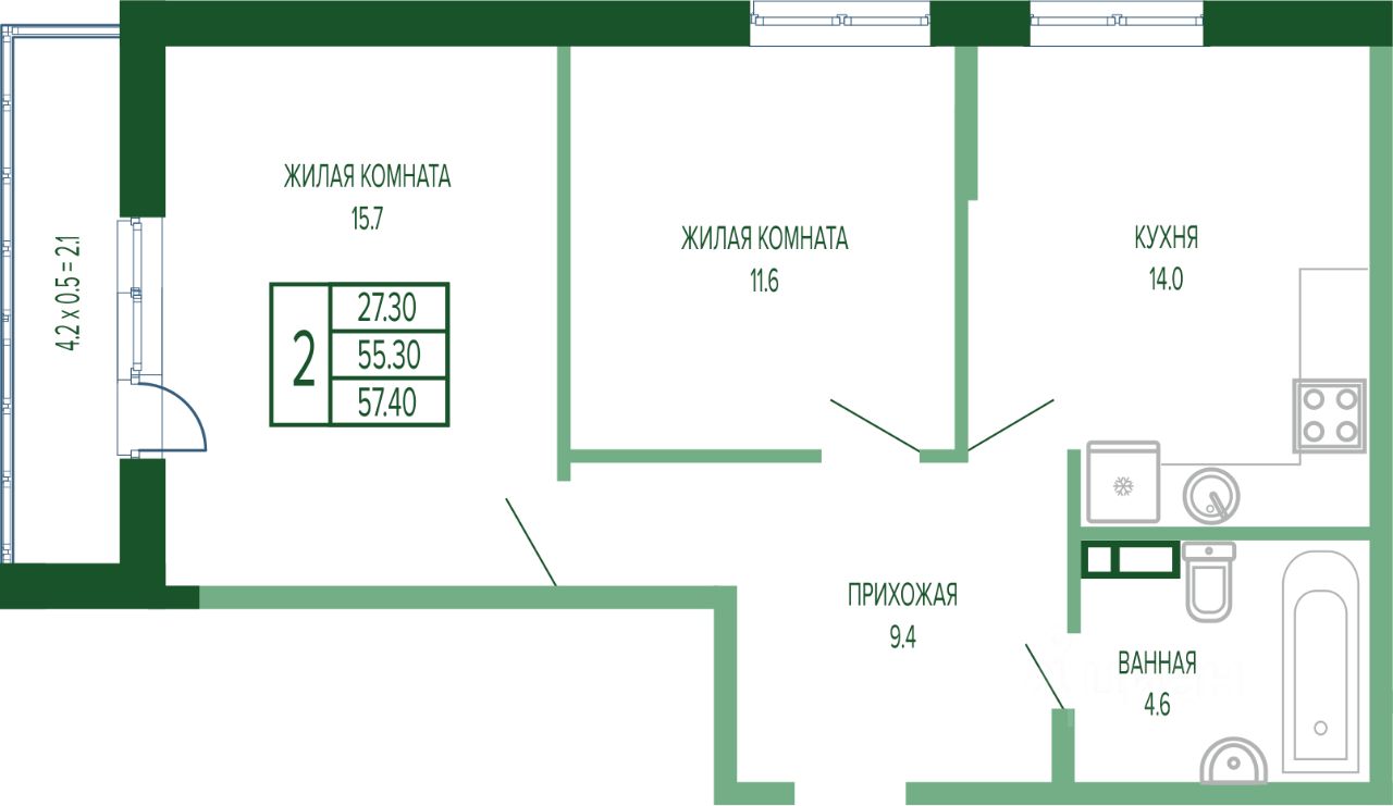 Жилая площадь27,3 м2