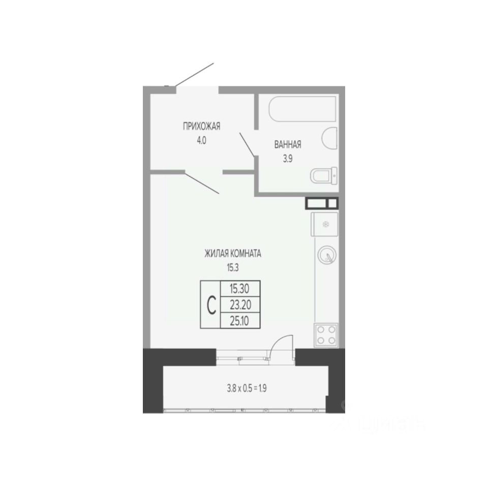 Общая площадь25,9 м2