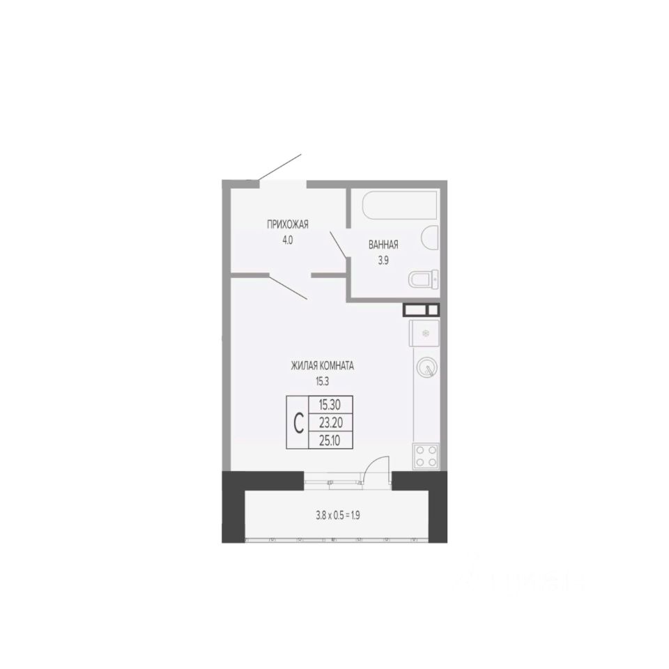 Общая площадь25,9 м2