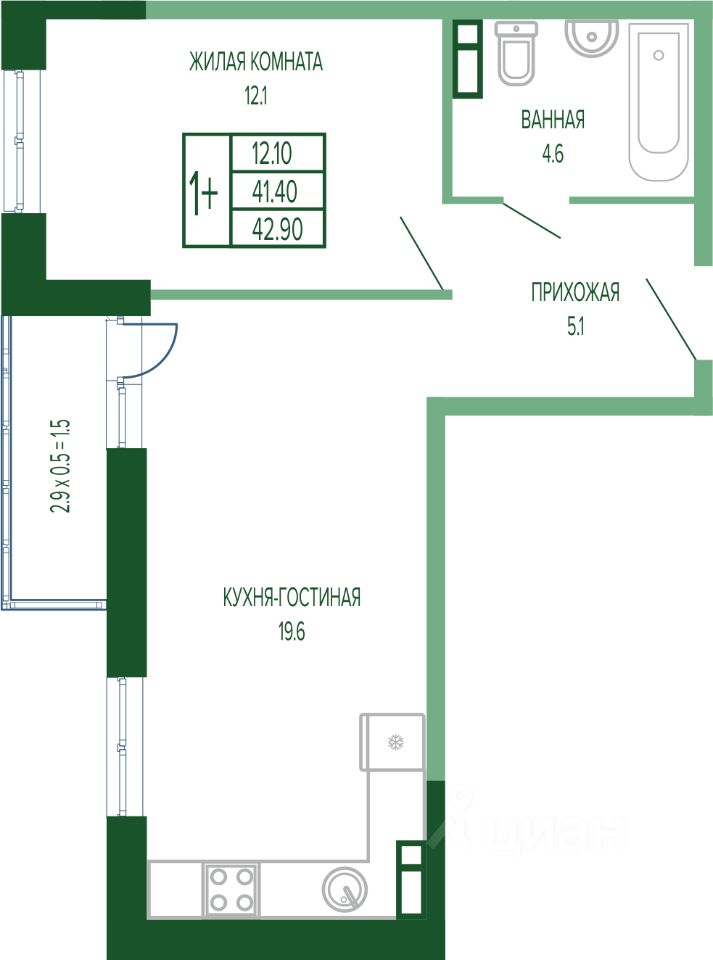 Общая площадь43,8 м2