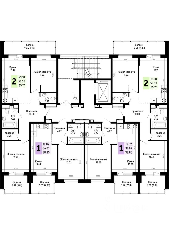 Общая площадь38,85 м2