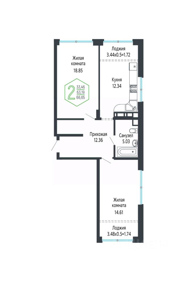 Общая площадь67,29 м2