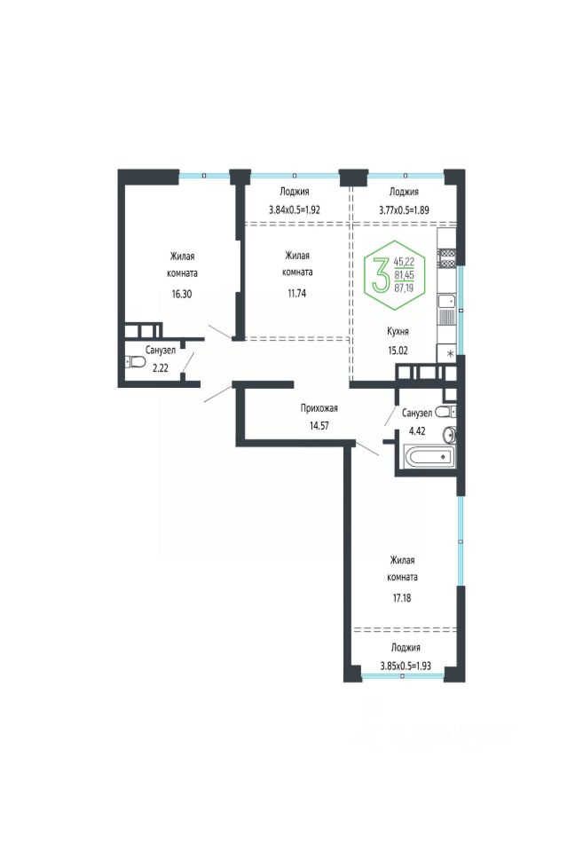 Общая площадь87,52 м2
