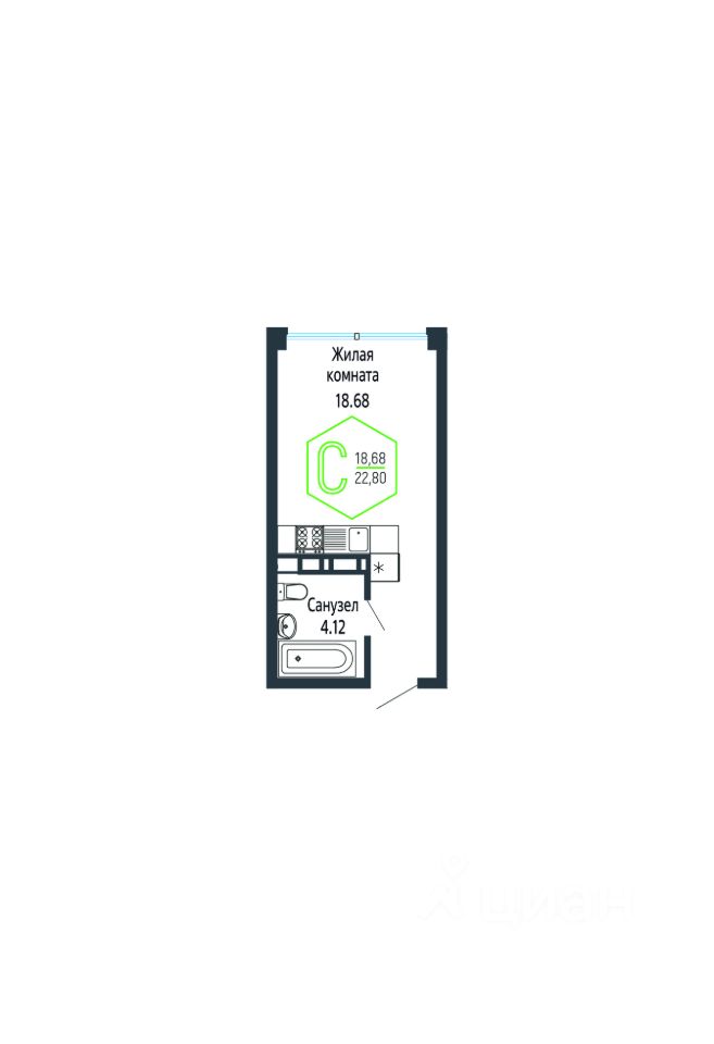 Общая площадь22,94 м2