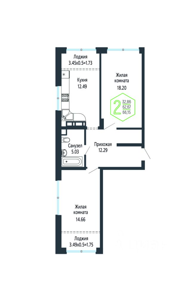 Общая площадь66,36 м2