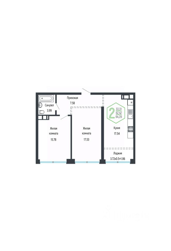 Общая площадь64,6 м2