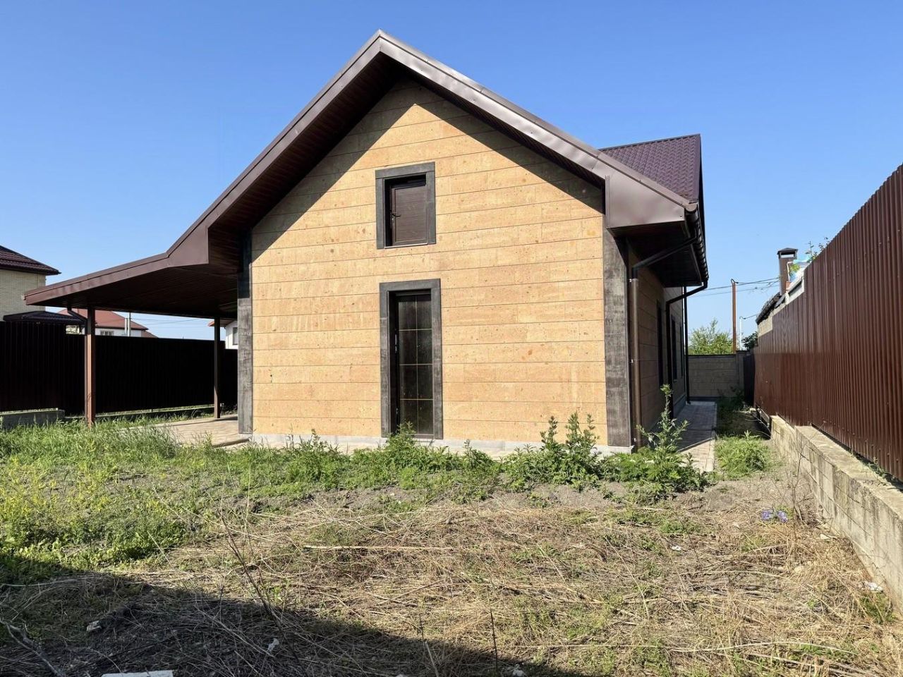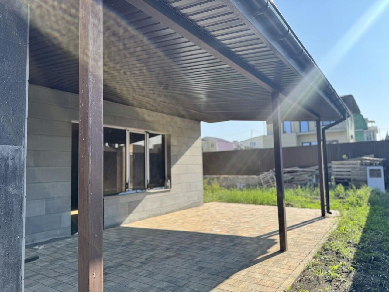 214 м2 на участке 4,7 сот (ровный, правильной формы и без уклона).