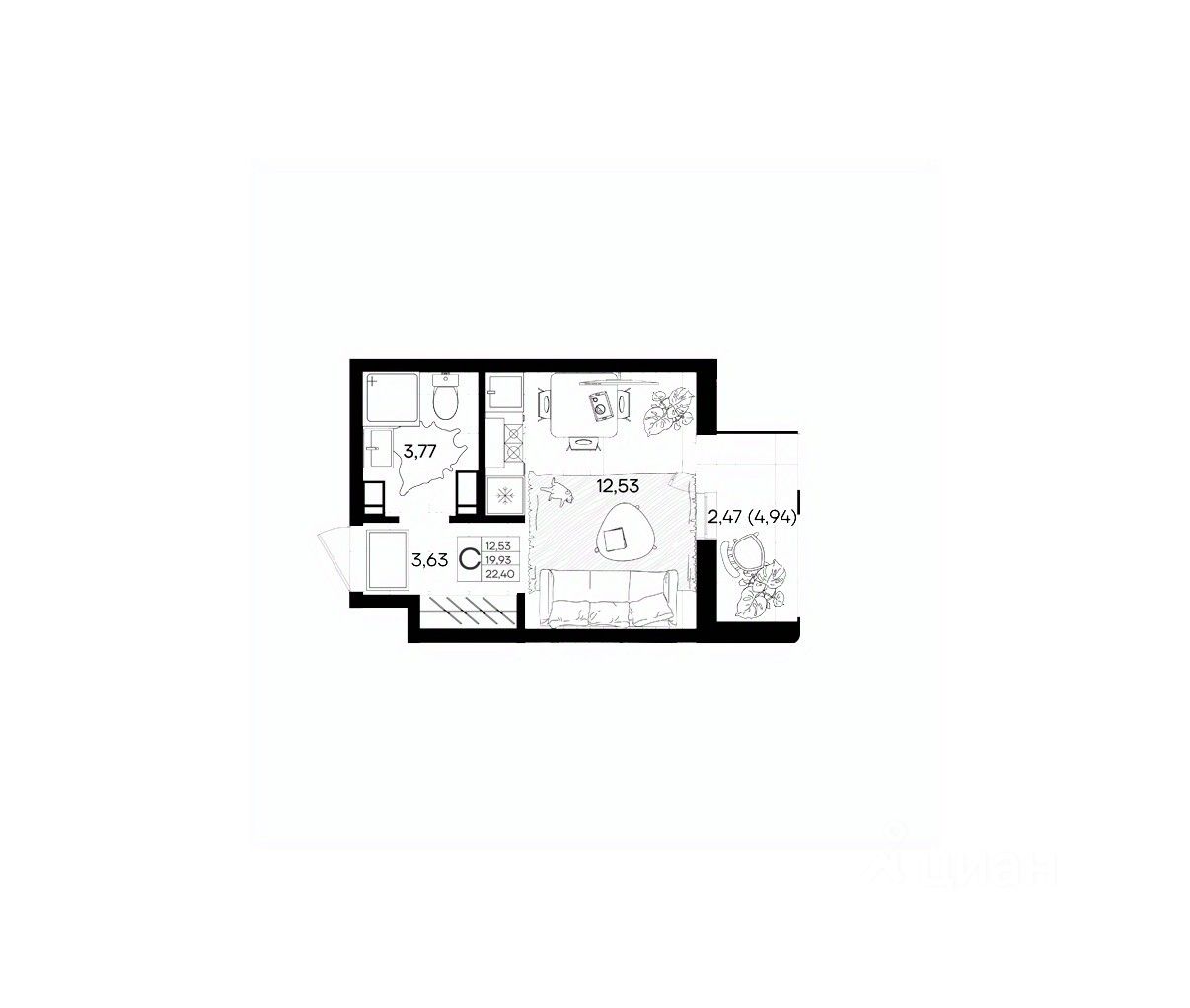 Общая площадь22,4 м2