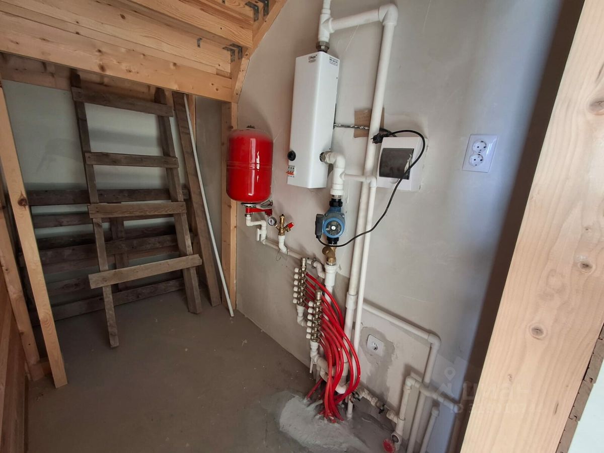 В доме установлена современная система отопления, которая включает двухконтурный котёл. Это обеспечивает эффективное регулирование температуры и экономичное использование энергоресурсов. Все основные коммуникации подключены: есть электричество, газ и централизованное водоснабжение. Для организации водоотведения используется септик объёмом 4,5 кубических метра, что соответствует всем требованиям и гарантирует надёжную работу системы.
