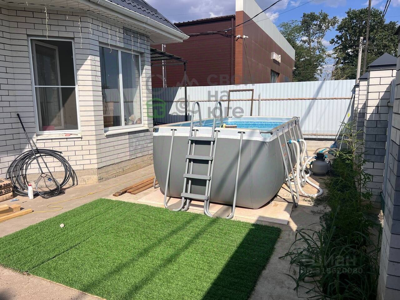 А теперь — про участок: — 3 сотки ИЖС - с отмосткой по периметру, забетонированной парковкой, с местом под второй автомобиль и будущий сад. — Участок ровный, правильной формы - удобно планировать всё: от грядок до зоны барбекю.