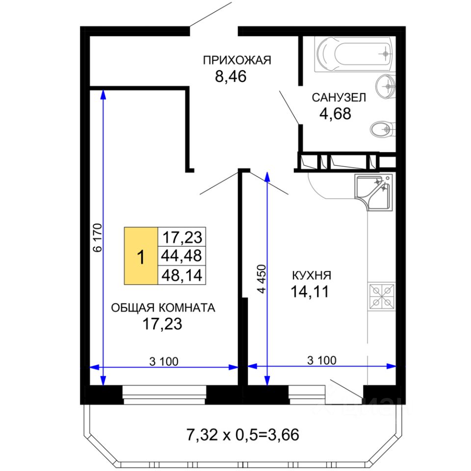 продам 1-к, Ростовское Шоссе, 30/6 корп. 38 578 948 ₽