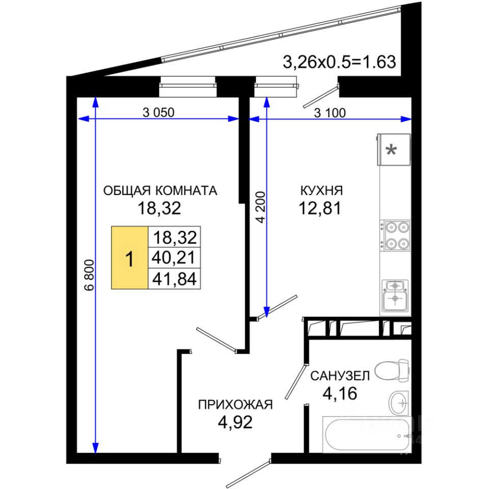 продам 1-к, Ростовское Шоссе, 30/6 корп. 410 198 300 ₽