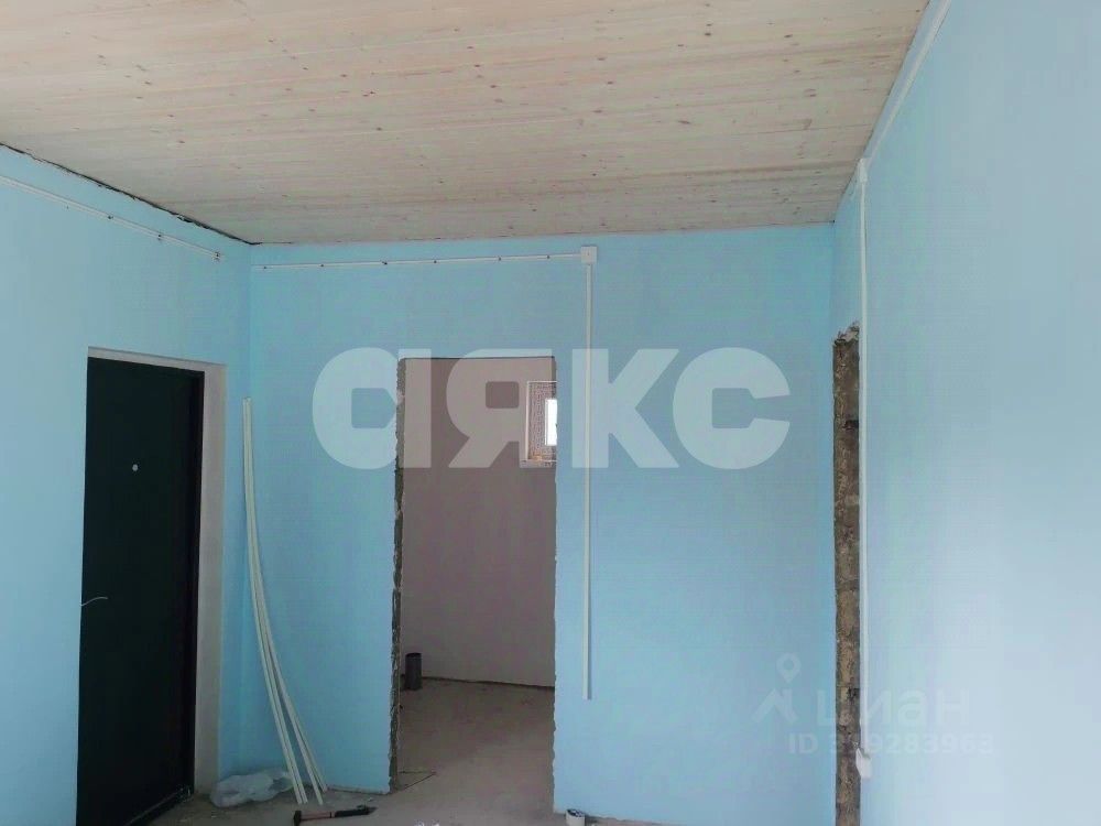 Выведены стены , произведена обвязка .Крыша накрыта и утеплена, установлены стеклопакеты. В доме предусмотрен совмещенный сан.узел, две комнаты и кухня . Стены поштукатурены и покрашены водоэмульсионной краской . Выполнена разводка канализации и водоотведения.