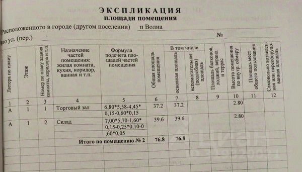Код объекта: 18865. Продаётся торговое помещение площадью 76,8 м2 в п. Волна.