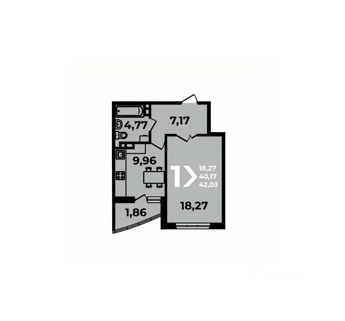 Общая площадь42,03 м2