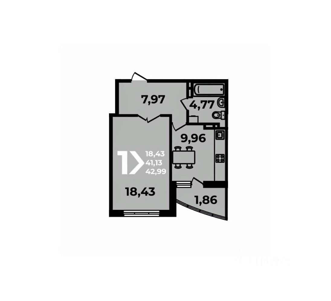 Общая площадь42,99 м2