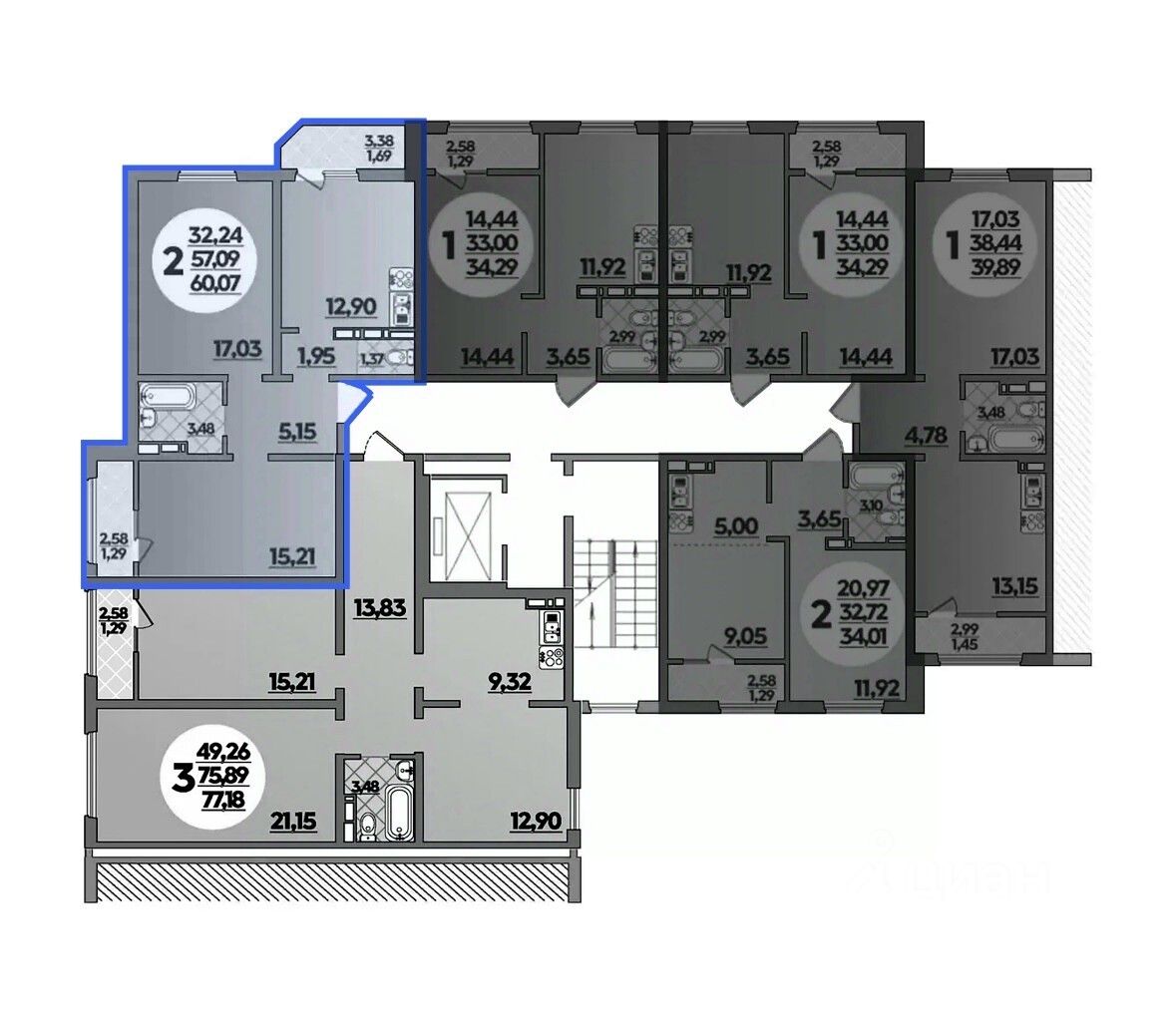Общая площадь60,07 м2