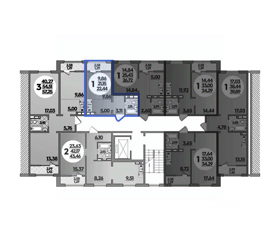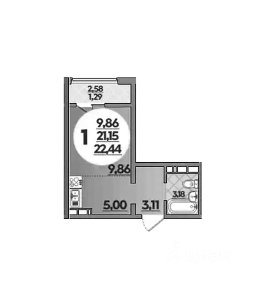 Общая площадь22,44 м2