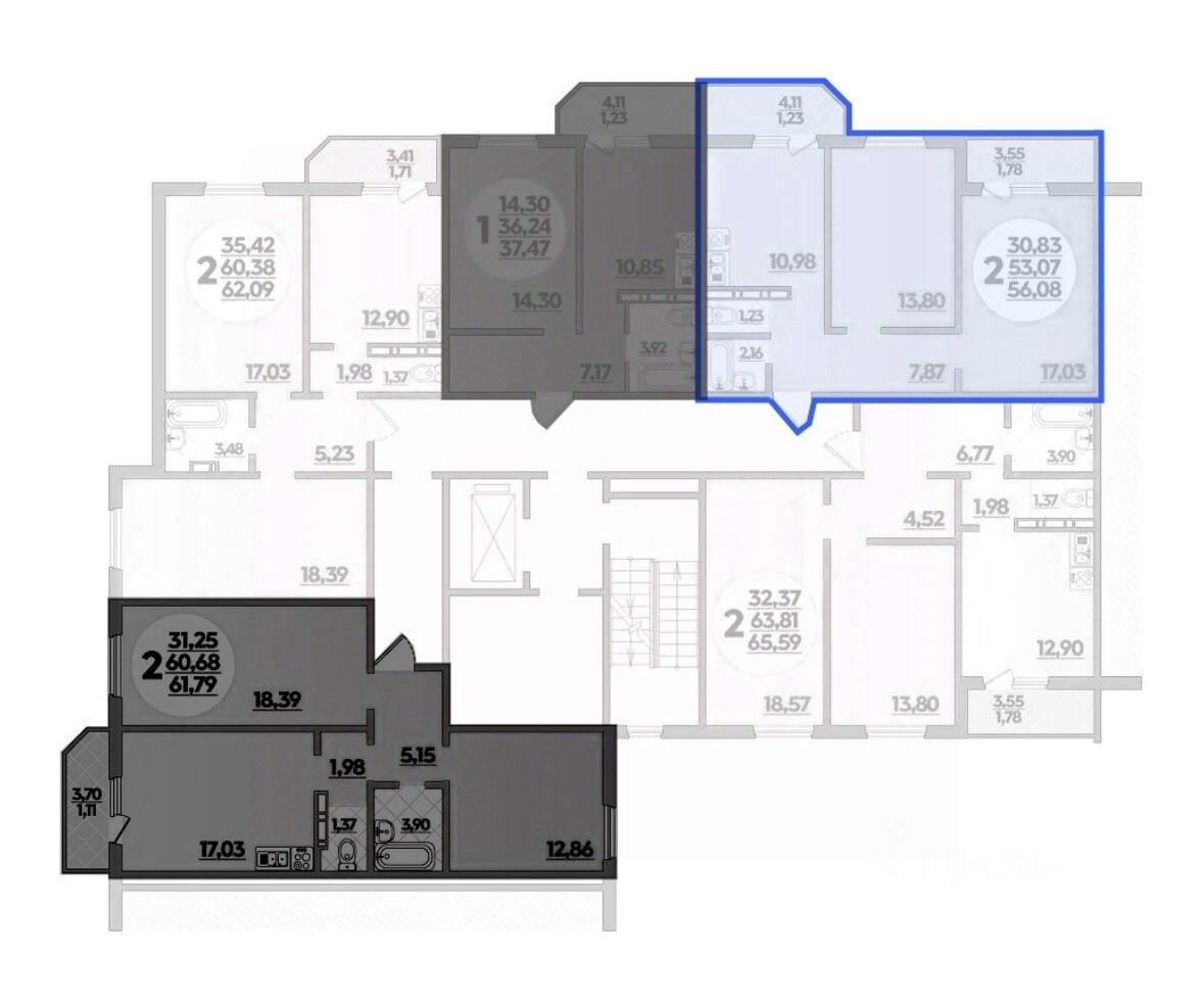 Общая площадь56,08 м2