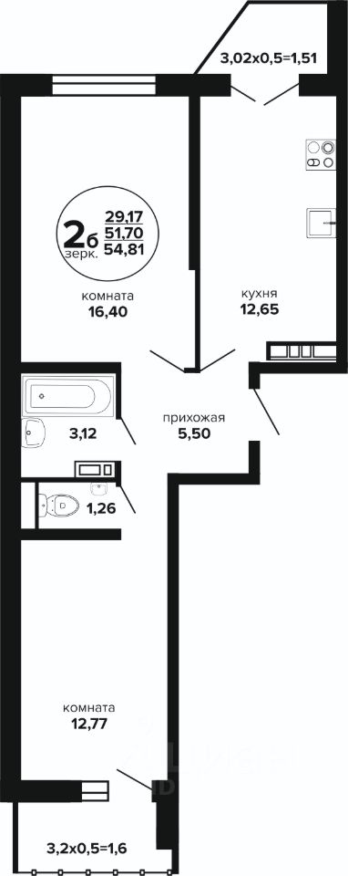 продам 2-к, Российская, 257/78 362 500 ₽